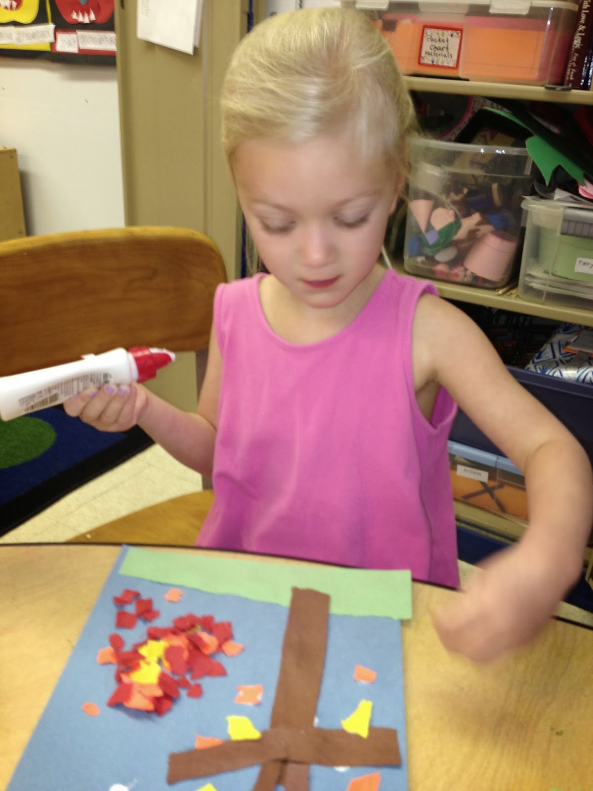 Another torn paper project involved making fall trees from torn pieces of construction paper. Tearing the paper is great fine motor skill work and always love the way the kids chose to place their leaves.